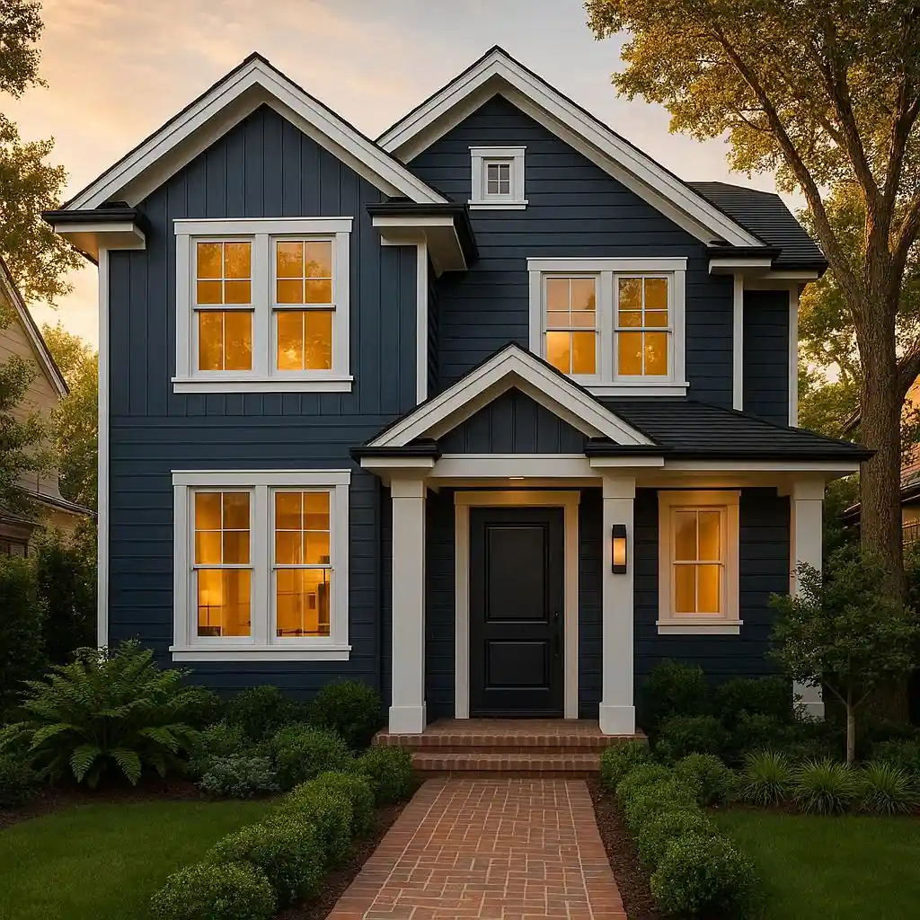Navy Blue: Bold and striking, navy blue creates a strong visual impact and pairs beautifully with white trim.