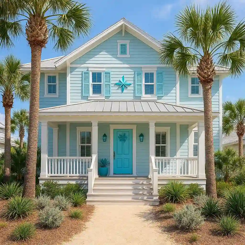 Sky Blue: Light and airy, sky blue hues create a cheerful and inviting facade that stands out.