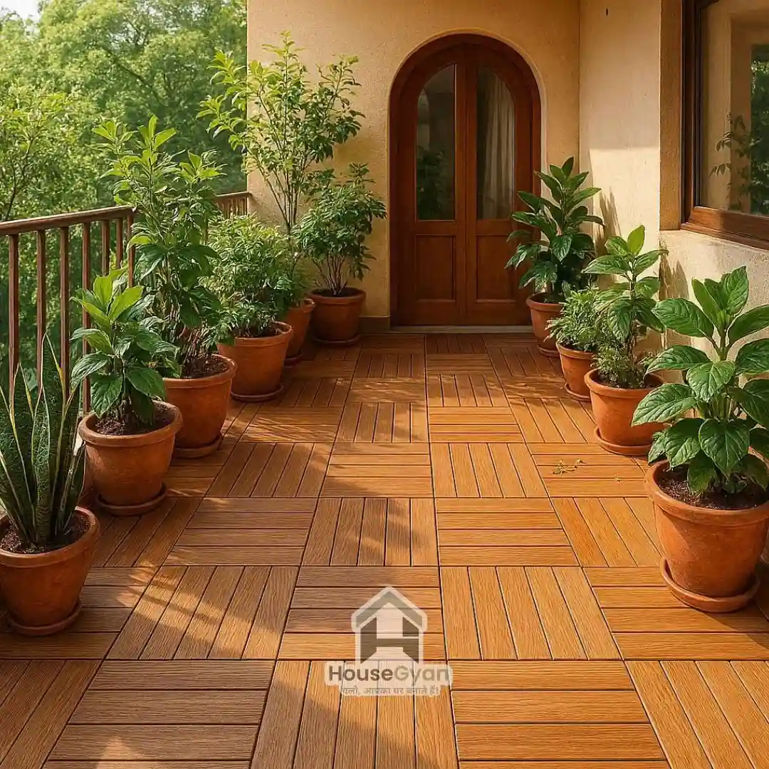 Wooden flooring gives a warm and natural look to balcony spaces.