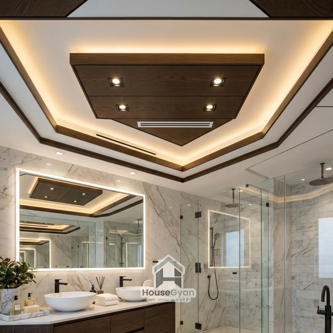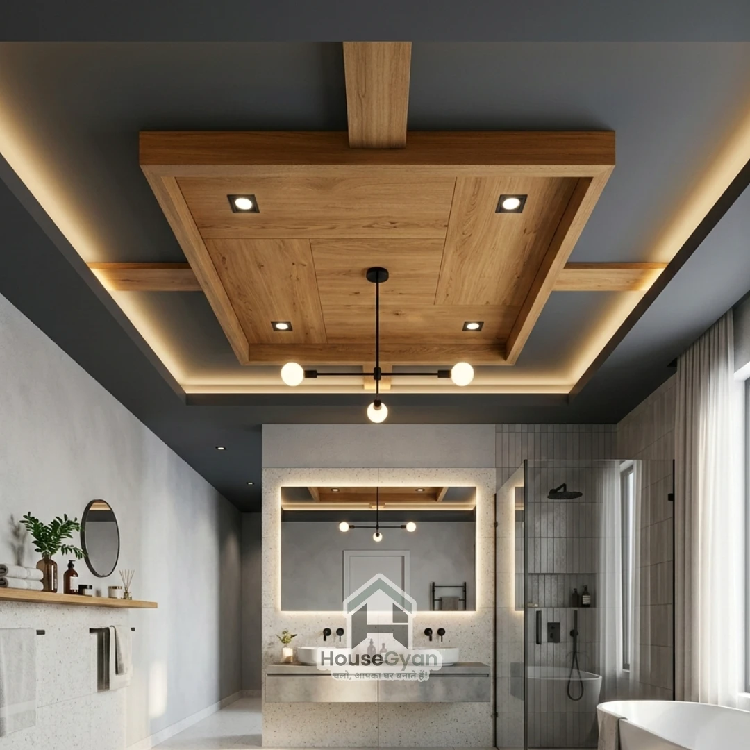- 3. Wooden Modern False Ceiling Design for Bathroom