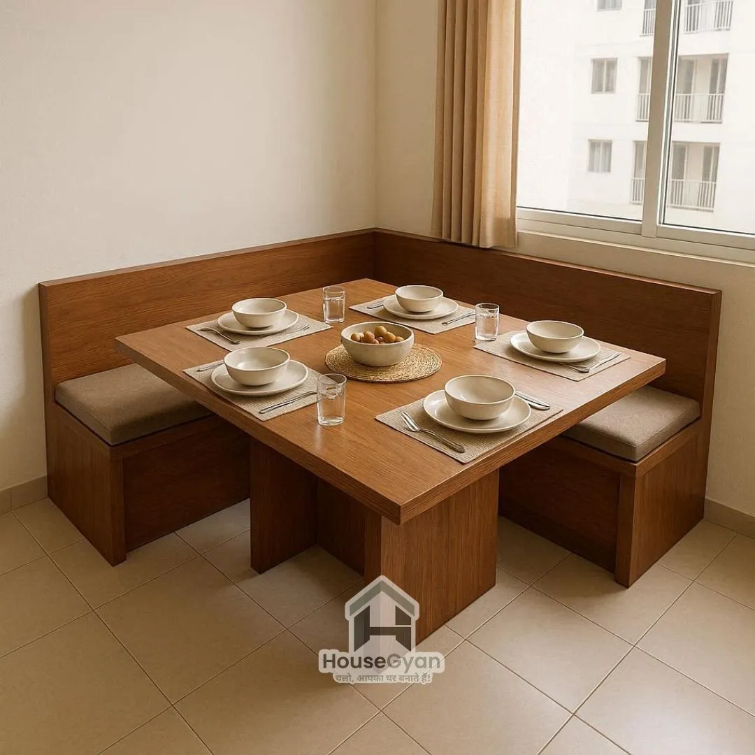 Space-saving dining table design ideas for home are essential for modern Indian living. They help balance comfort, function, and style in limited spaces. With smart planning, even a small dining area can feel open and welcoming.