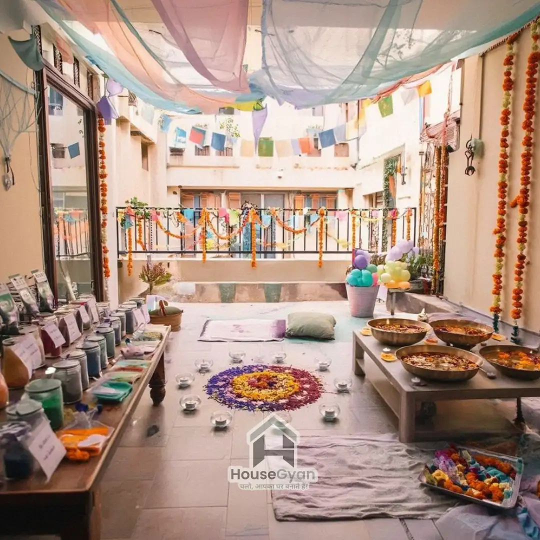 Decorating your home for Holi is all about blending colors and traditions. Here’s how you can do it: