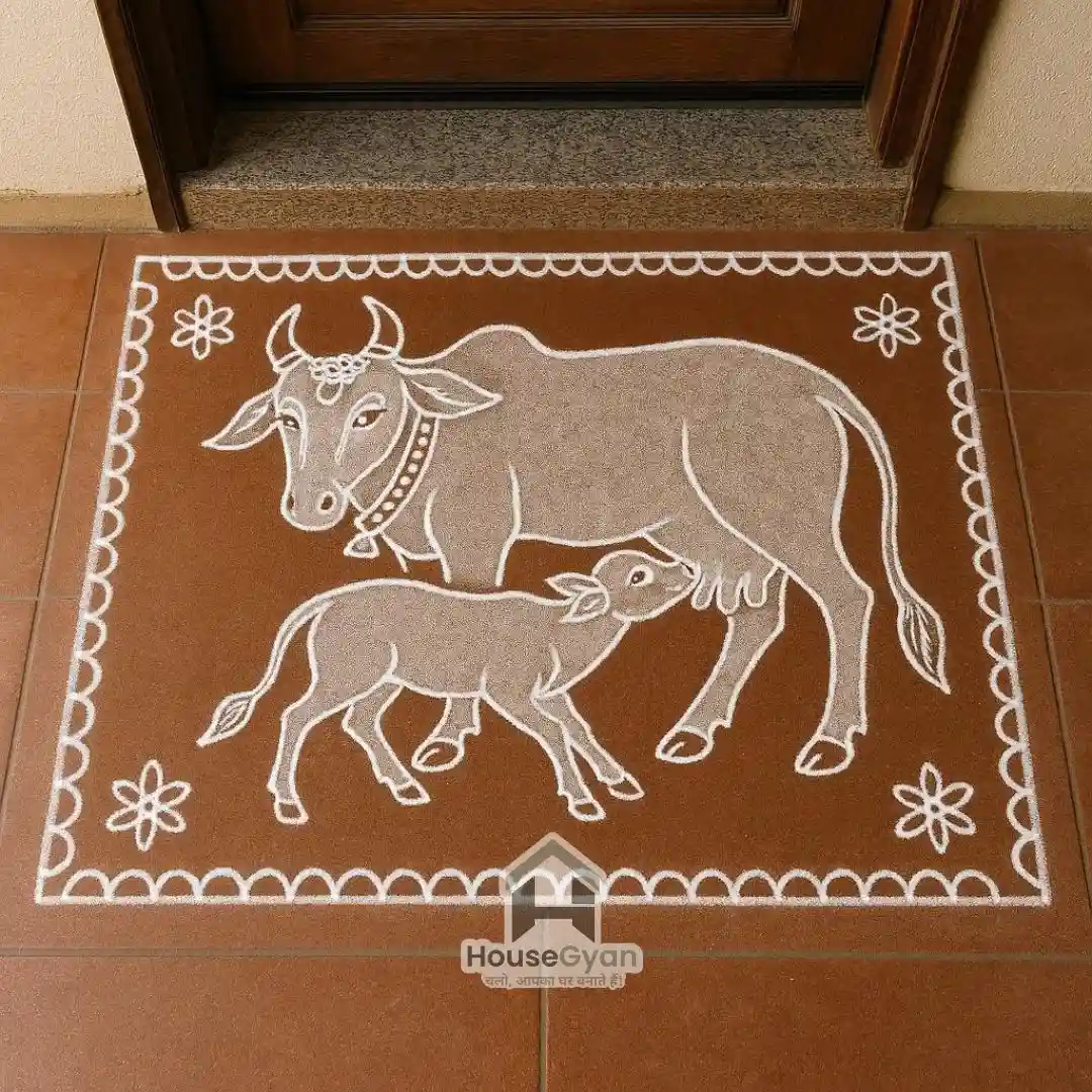 2. Cow and Calf Kolam Design