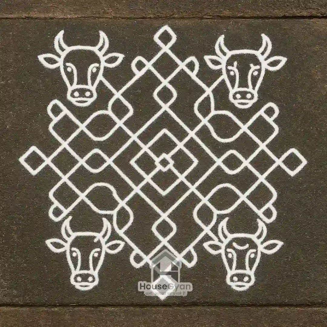 This is one of the most popular Mattu Pongal kolam designs for home.