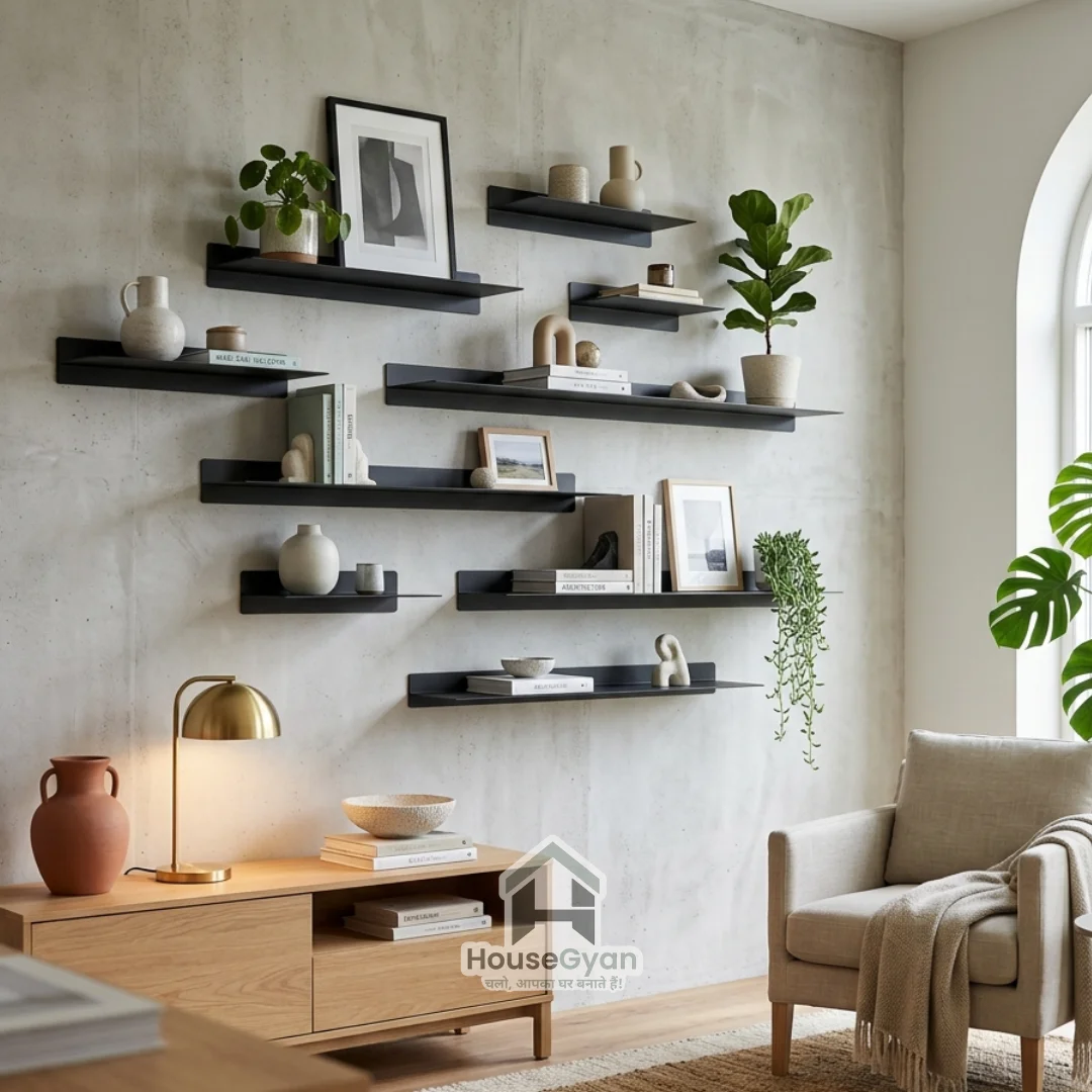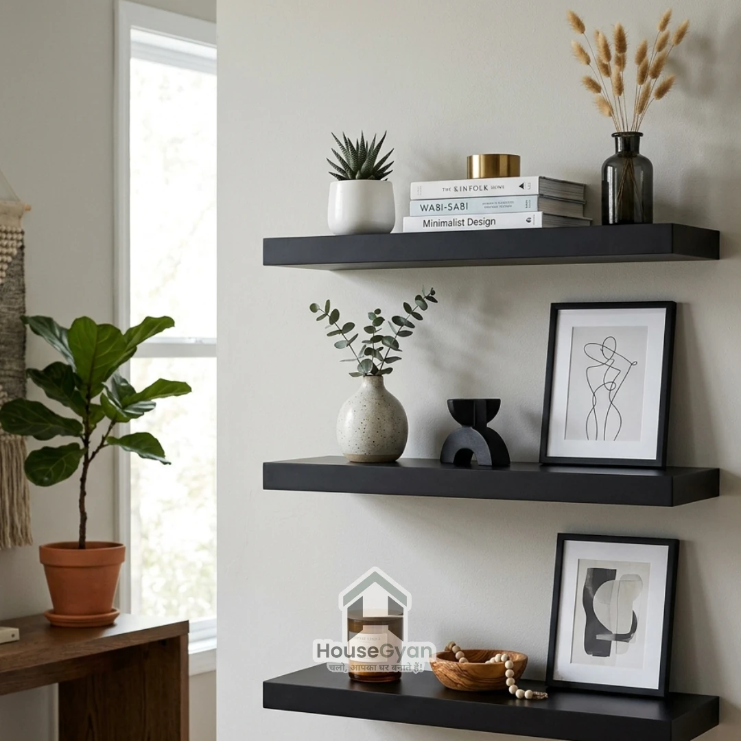 Bold and sophisticated, these provide a striking contrast against neutral walls, perfect for modern wall shelf decor.