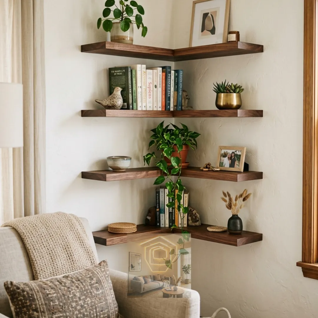 Floating shelves are perfect for living rooms, kitchens, bathrooms, and even as bedside tables in small bedrooms.