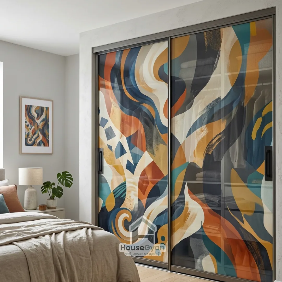 Abstract prints include artistic patterns, shapes, and color blends that give wardrobes a modern and creative look. This type of sliding wardrobe door print works well in contemporary bedrooms and adds a bold design statement.