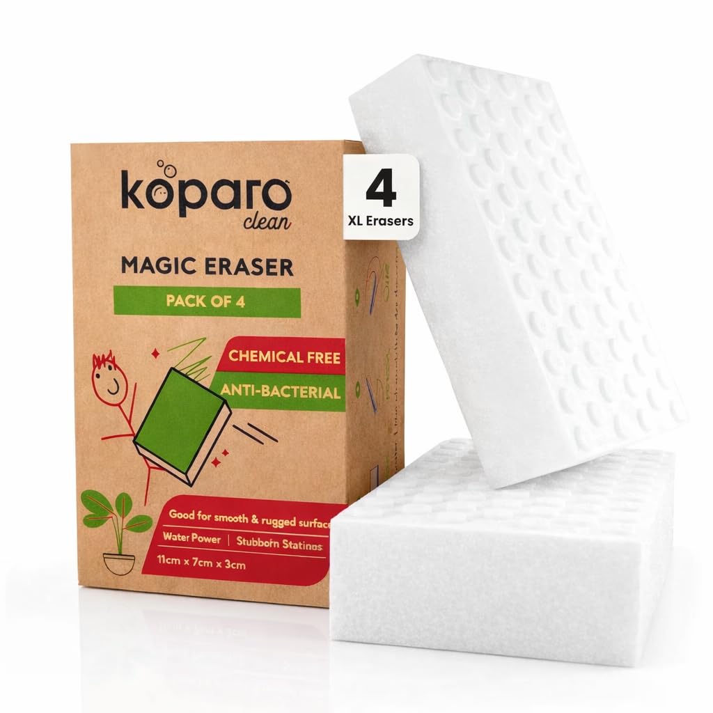| 8 | ![]() | Koparo Magic Eraser | Pack of 4 | Melamine Foam | Anti-bacterial, chemical-free, premium | Home cleaning | 299 | Buy On Amazon |