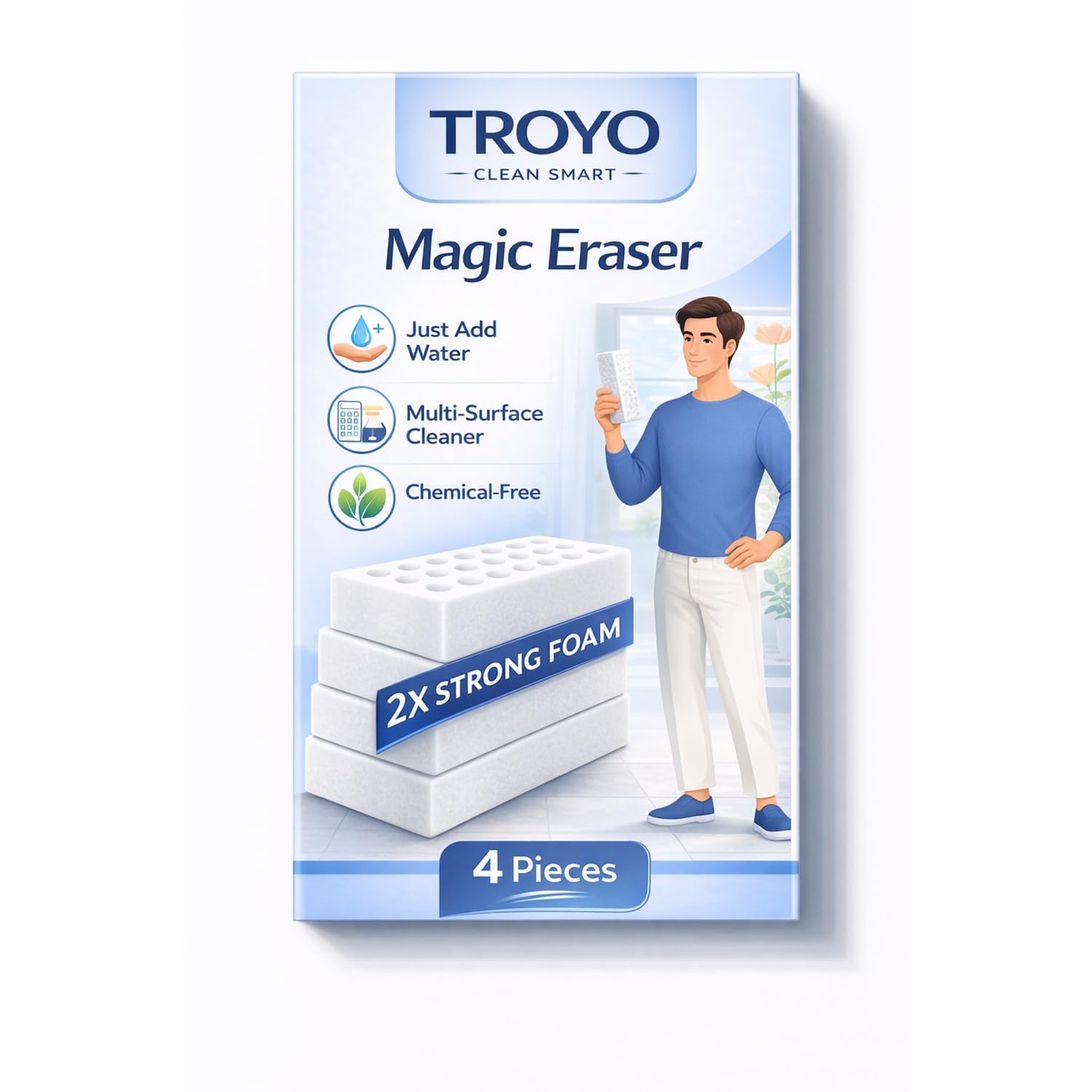 | 4 | ![]() | TROYO Magic Eraser | Pack of 4 | Melamine Foam | Multi-purpose, stain remover, budget | Daily cleaning | 151 | Buy On Amazon |