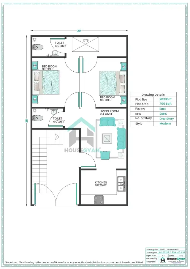 - 2. 20×35 East Facing 2BHK Ground Floor House Plan (700 Sq Ft)