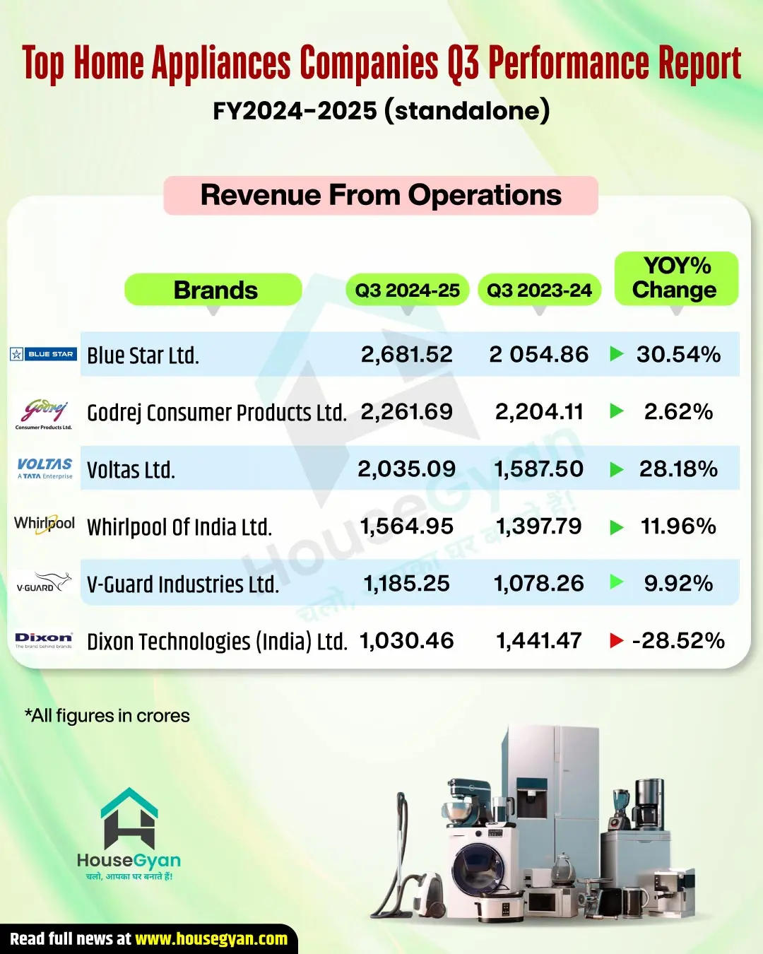 Top Revenue Growth: Blue Star (+30.54%) & Voltas (+28.18%)