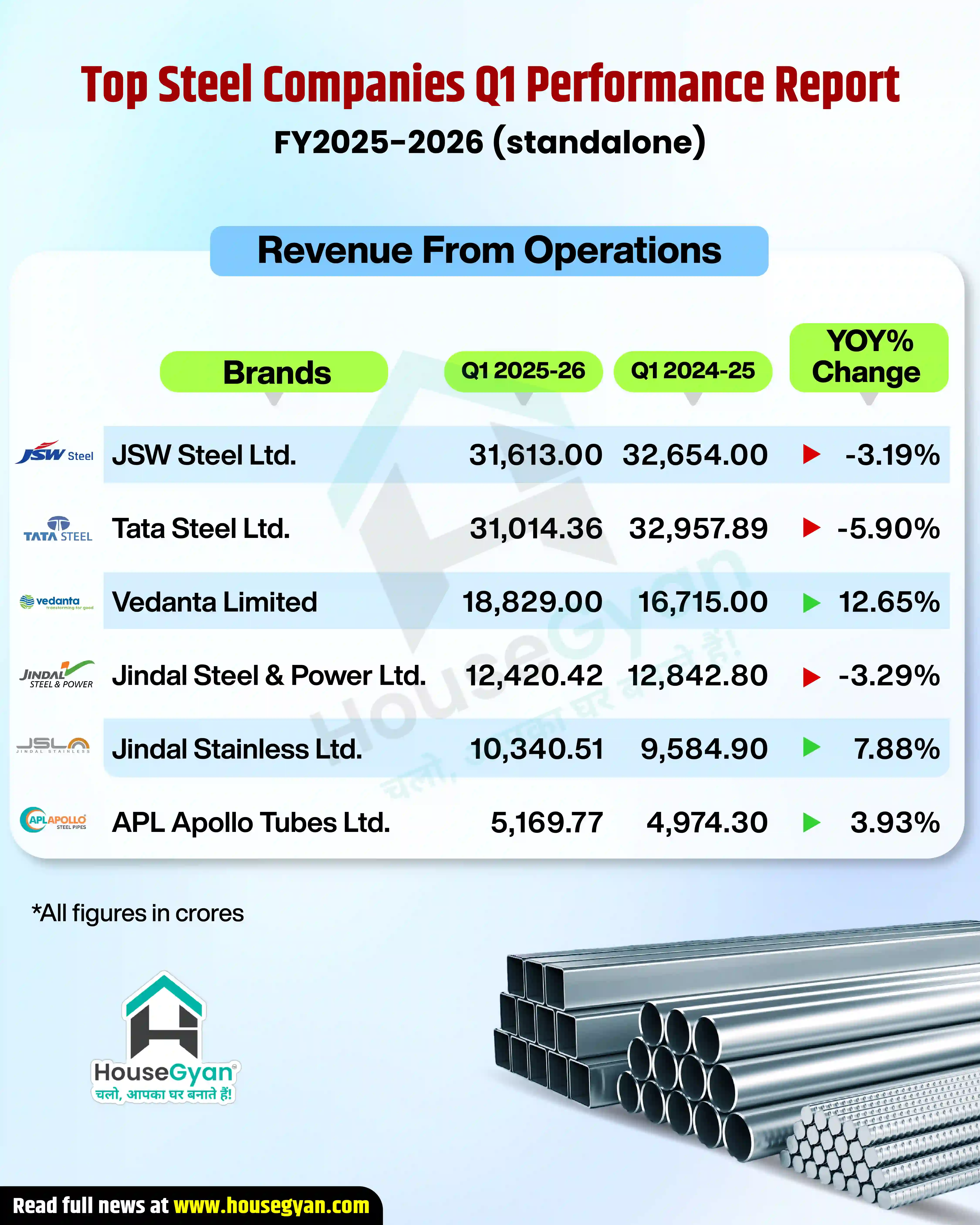 Top Steel Companies Q1 Performance Report (FY25-26 Standalone)