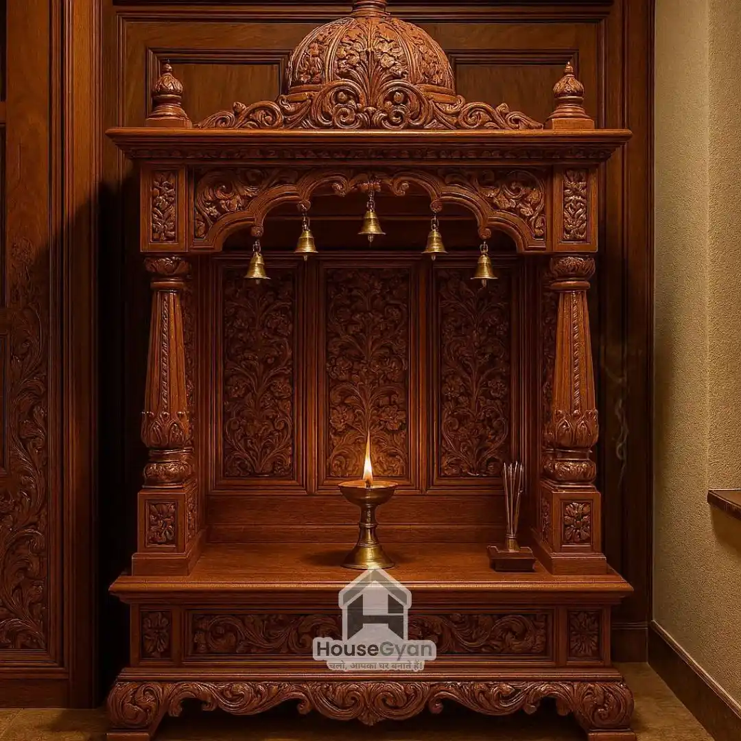 2. Wooden Mandir with Carved Panels