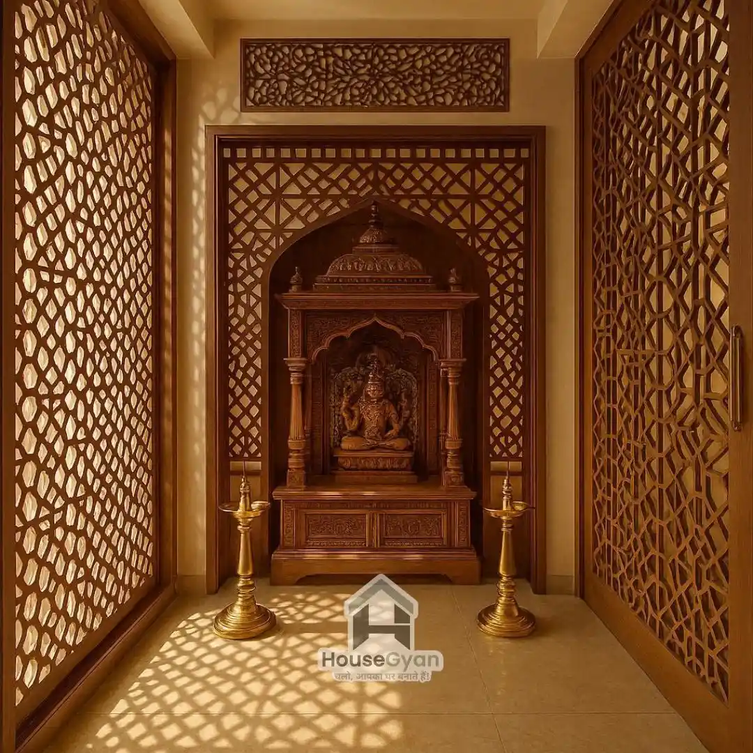 7. Pooja Room with Jaali Design