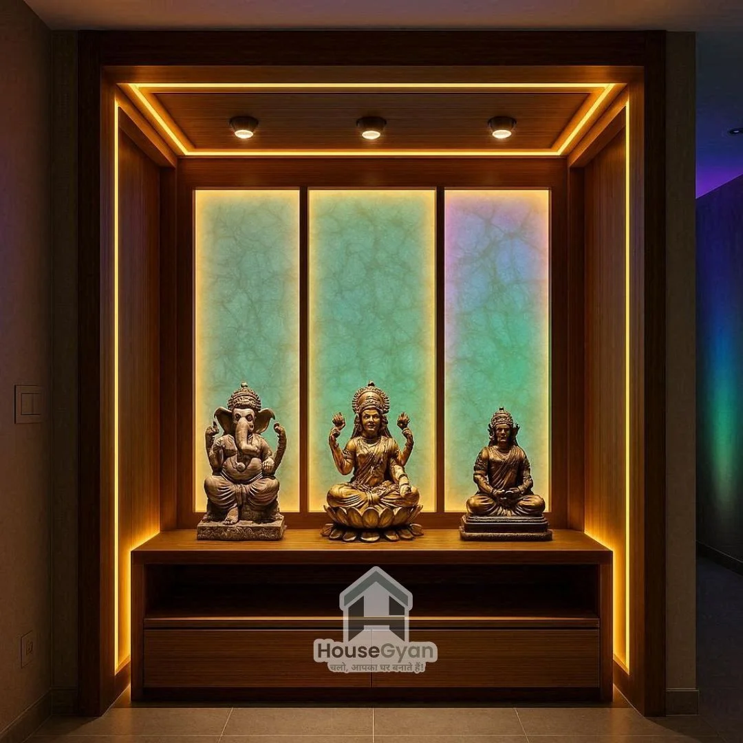 8. Modern Pooja Room with LED Lighting