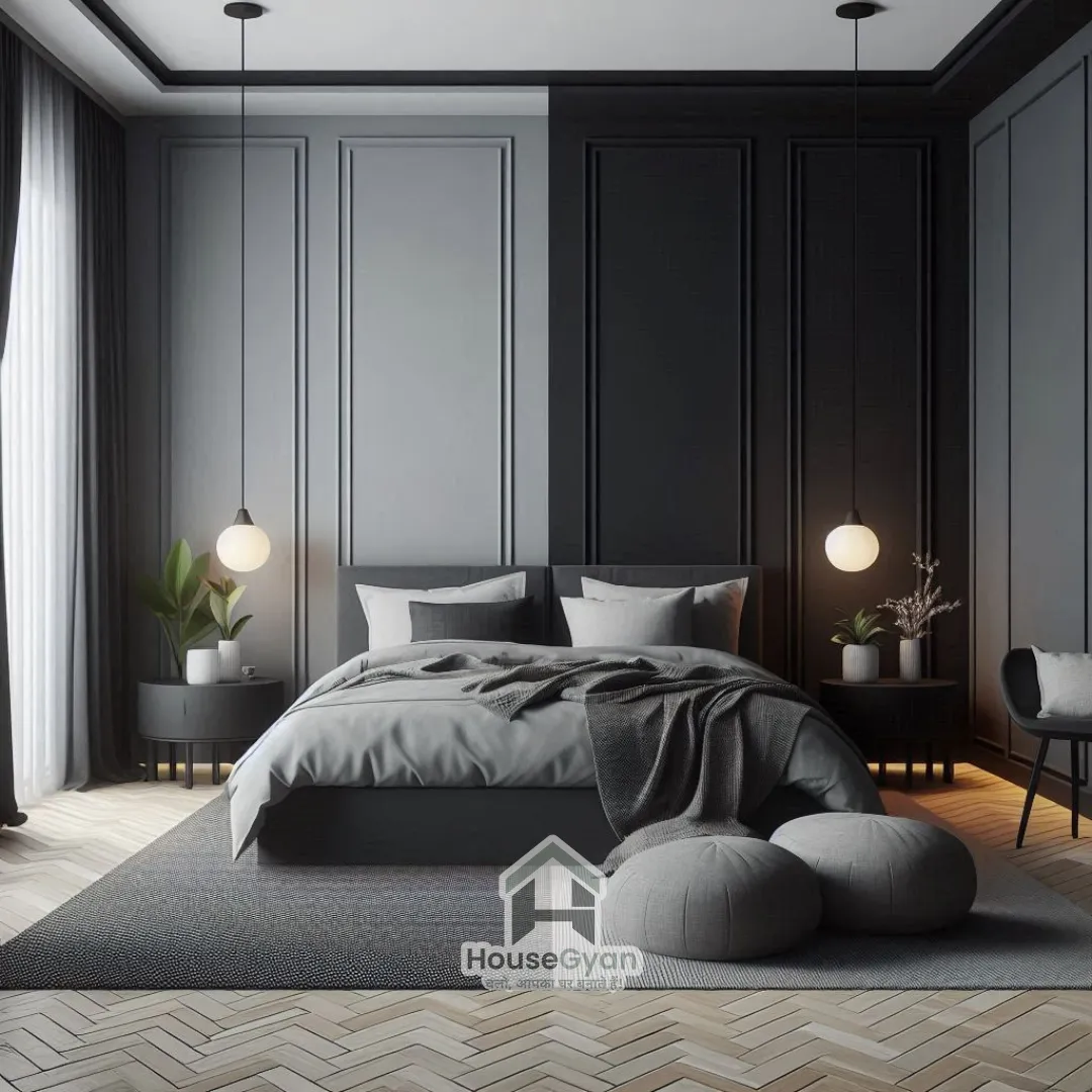 14. Black and Grey Two Colour Combination for Bedroom Walls