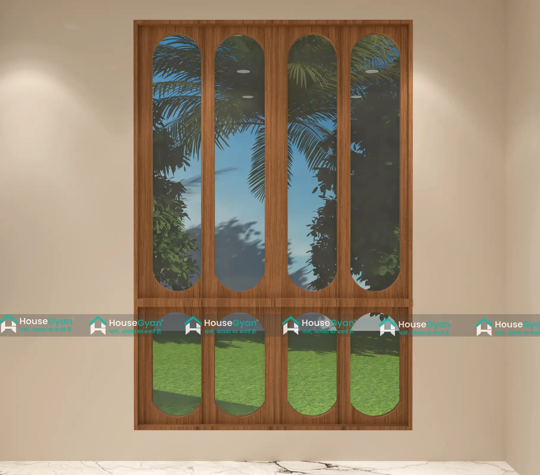 This old-school themed window design blends timeless charm with elegant craftsmanship. Featuring a rich wooden frame and tall arched glass panels, the window reflects classic architectural aesthetics inspired by traditional homes. The vertical divisions and smooth curved edges add a vintage character while maintaining symmetry and balance. The clear glass panels allow ample natural light to flow indoors and offer soothing outdoor views, enhancing the openness of the space. The warm wood finish creates a cozy, nostalgic feel, making this window design ideal for heritage-style homes, traditional interiors, villas, or classic modern houses that want a touch of old-world elegance. Overall, this window design perfectly captures an old-school look with a refined finish, combining beauty, functionality, and timeless appeal.