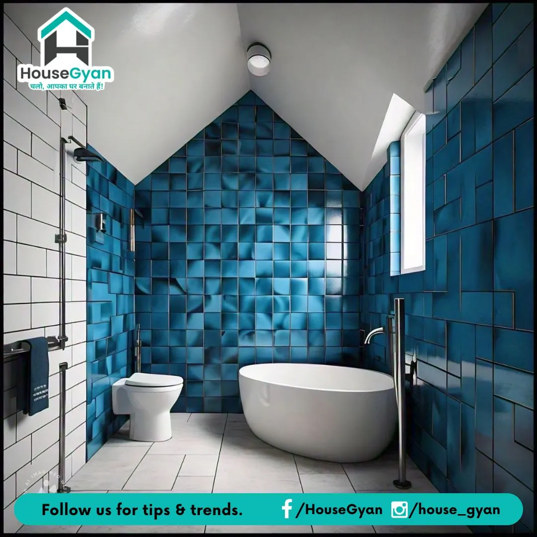 Transform your bathroom with Scandinavian design featuring sleek blue tiles. Embrace minimalism and functionality for a refreshing, modern space.