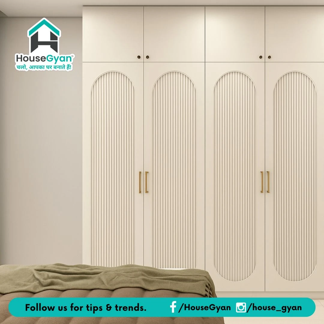 A 4-door contemporary swing wardrobe with study space, featuring a sleek cream finish, perfect for modern bedrooms and efficient storage.