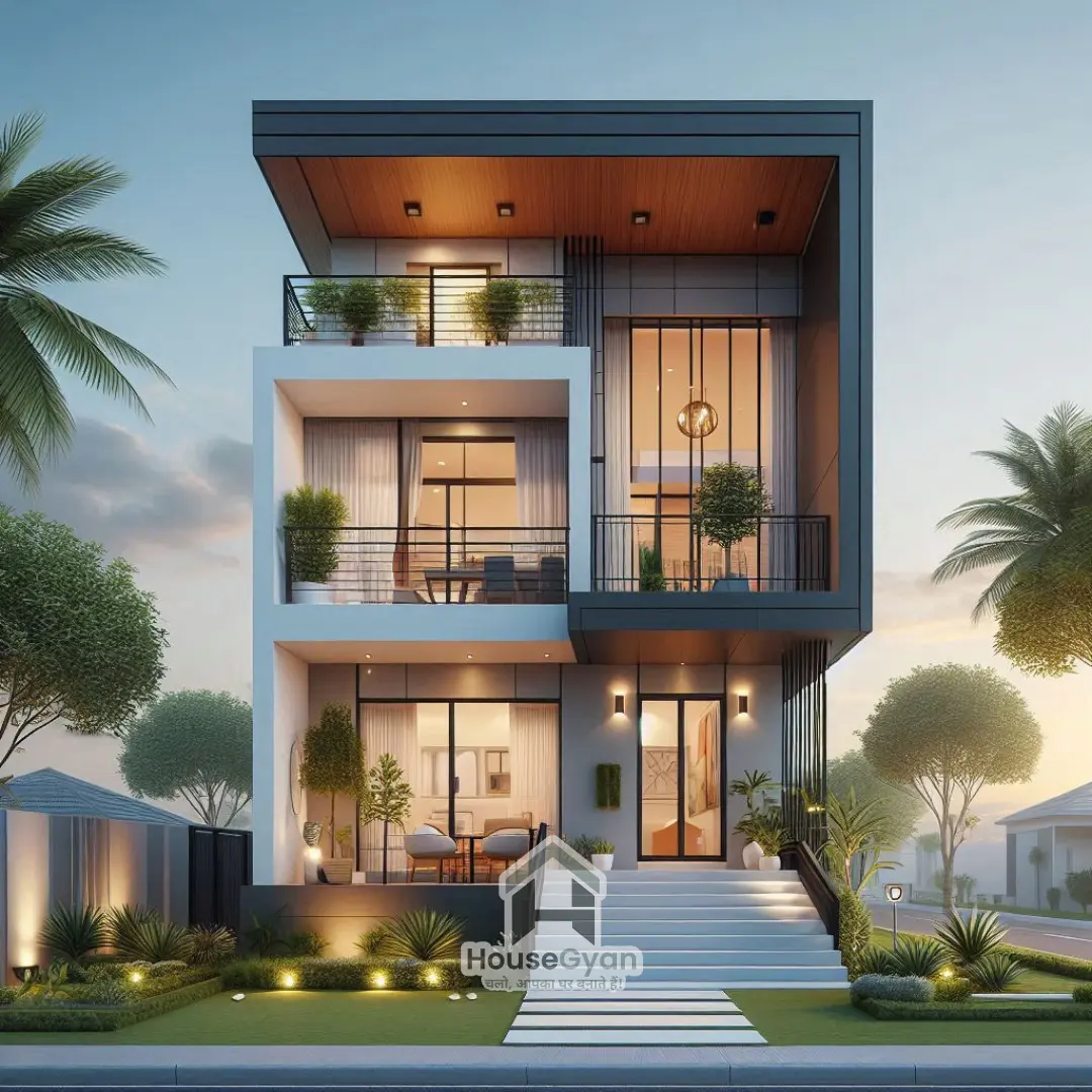 30ft x 40ft Area | Modern 3D Elevation | Triple Storey | 1200 Sqft Area | East, West, North, South Facing | Housegyan Design