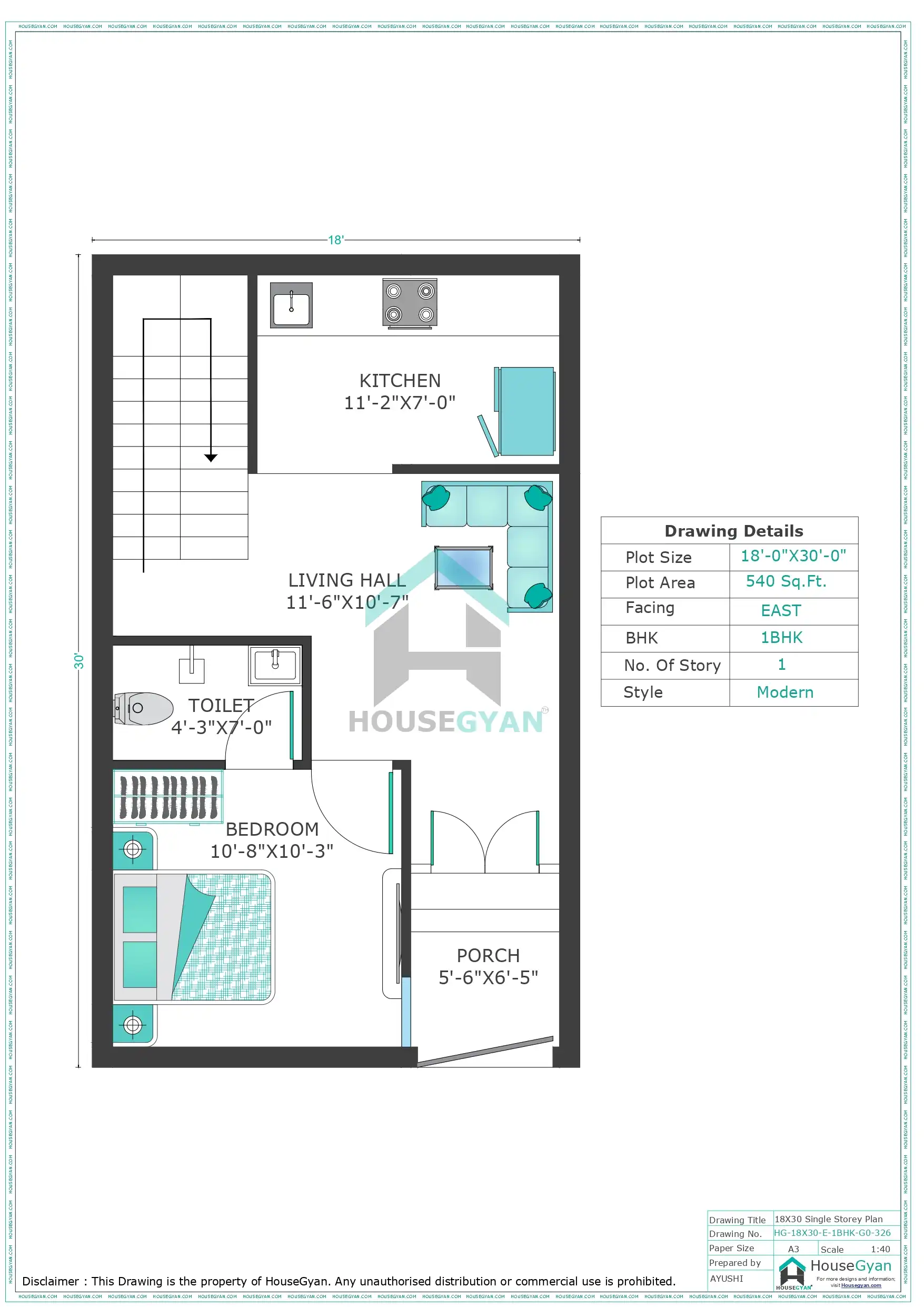 Explore more 18X30 house plans and modern 1BHK designs only at HouseGyan!