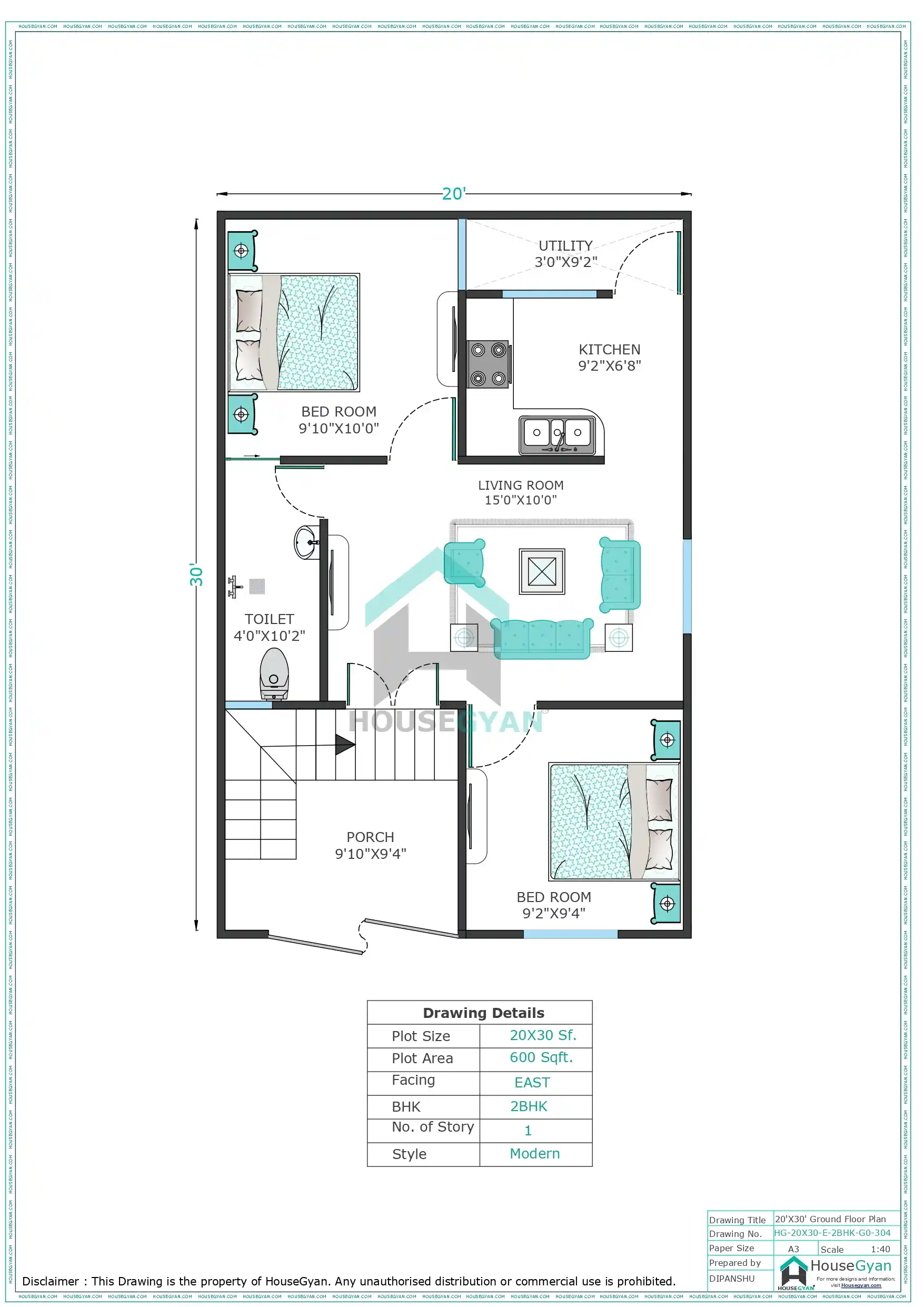 At HouseGyan, you can explore multiple 20X30 house plan designs, including: