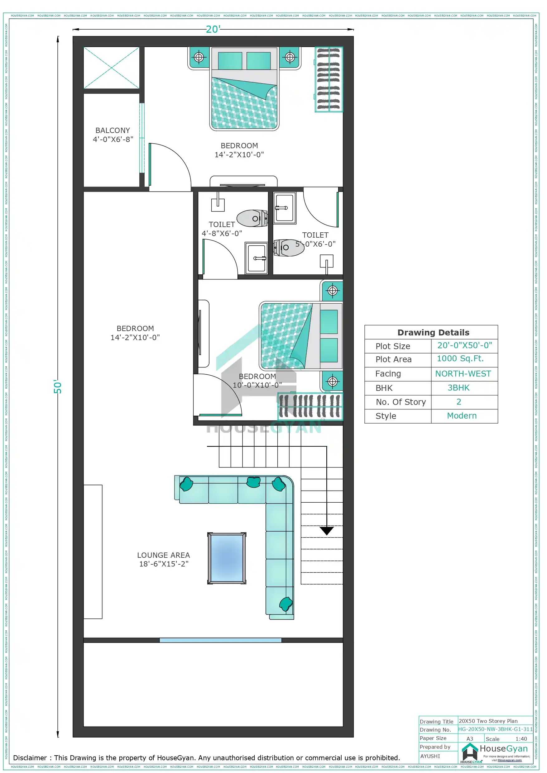 A 20X50 plot size is one of the most versatile residential dimensions, suitable for a variety of layouts: