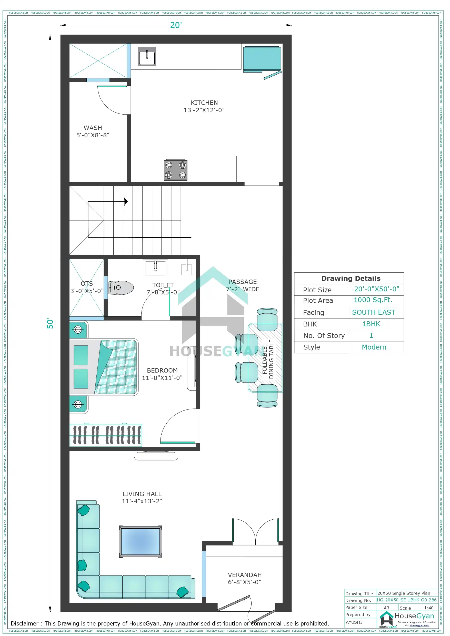Get your custom 20X50 house plan designed by expert architects at HouseGyan according to your needs and budget.