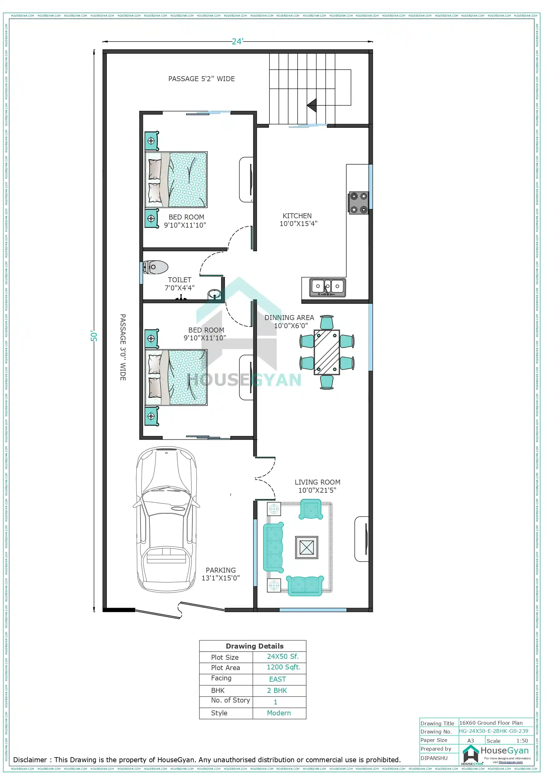 Whether you're looking to build your dream home with a Custom House Drawing or want a compact, modern layout, this 900 sqft floor plan is an excellent choice for a east-facing plot. To get an rough idea of the expenses, use our House Construction Price Calculator to estimate your costs effectively.