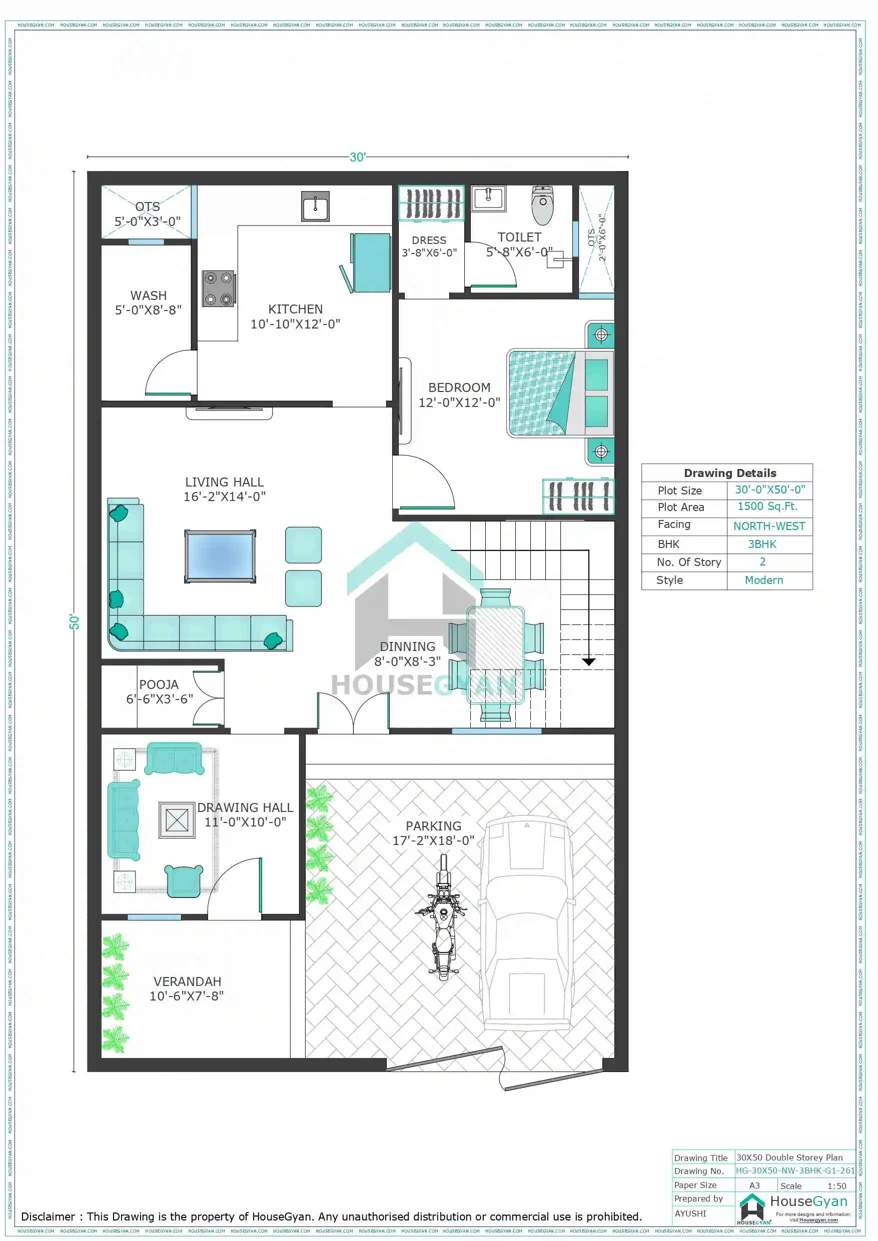 At HouseGyan, we specialize in Custom House Drawings for 30x50 plots. Whether you dream of a modern double-floor home or a stylish multi-storey design, we’ll create the ideal plan for you. Want to know the estimated cost of building this house? Use our House Construction Price Calculator today and plan your budget smartly.