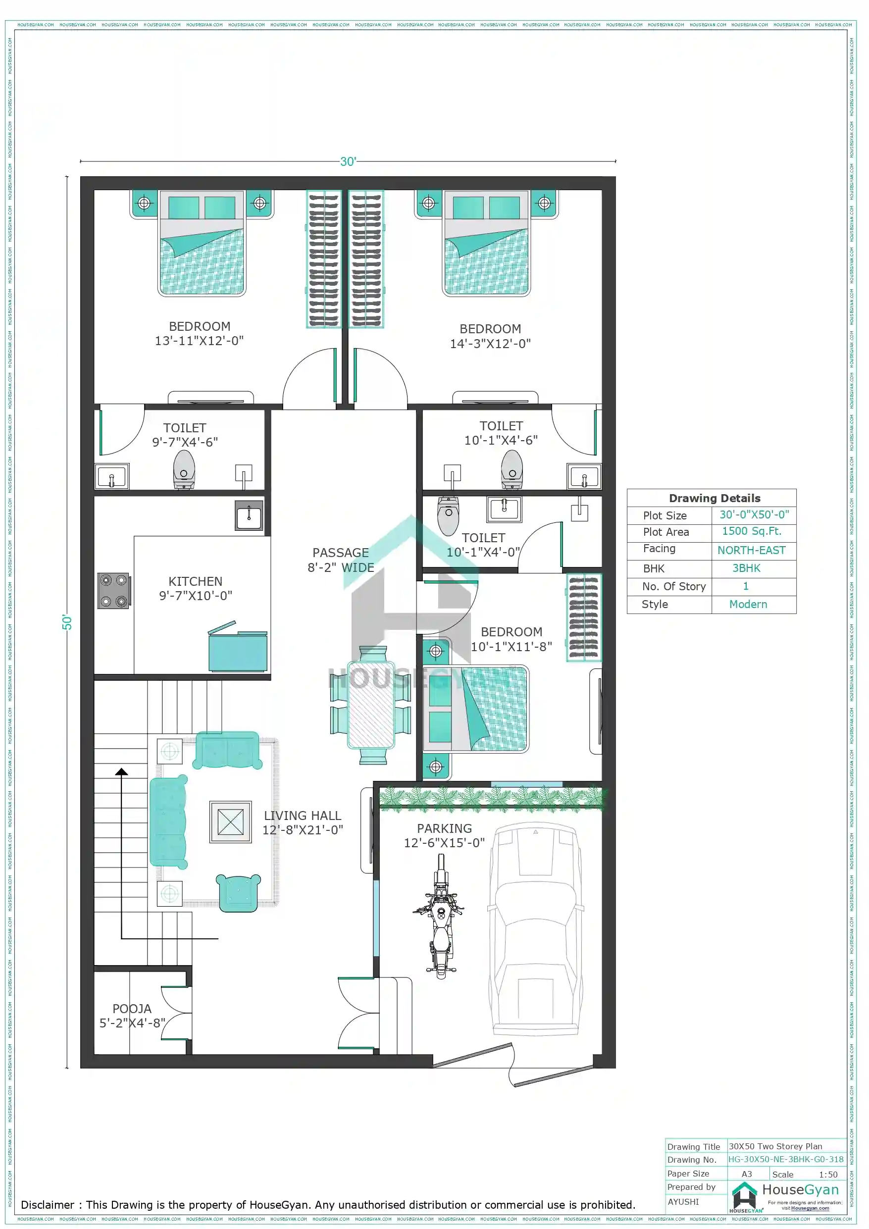 At HouseGyan, you can explore a wide variety of 30X50 house plan options, such as: