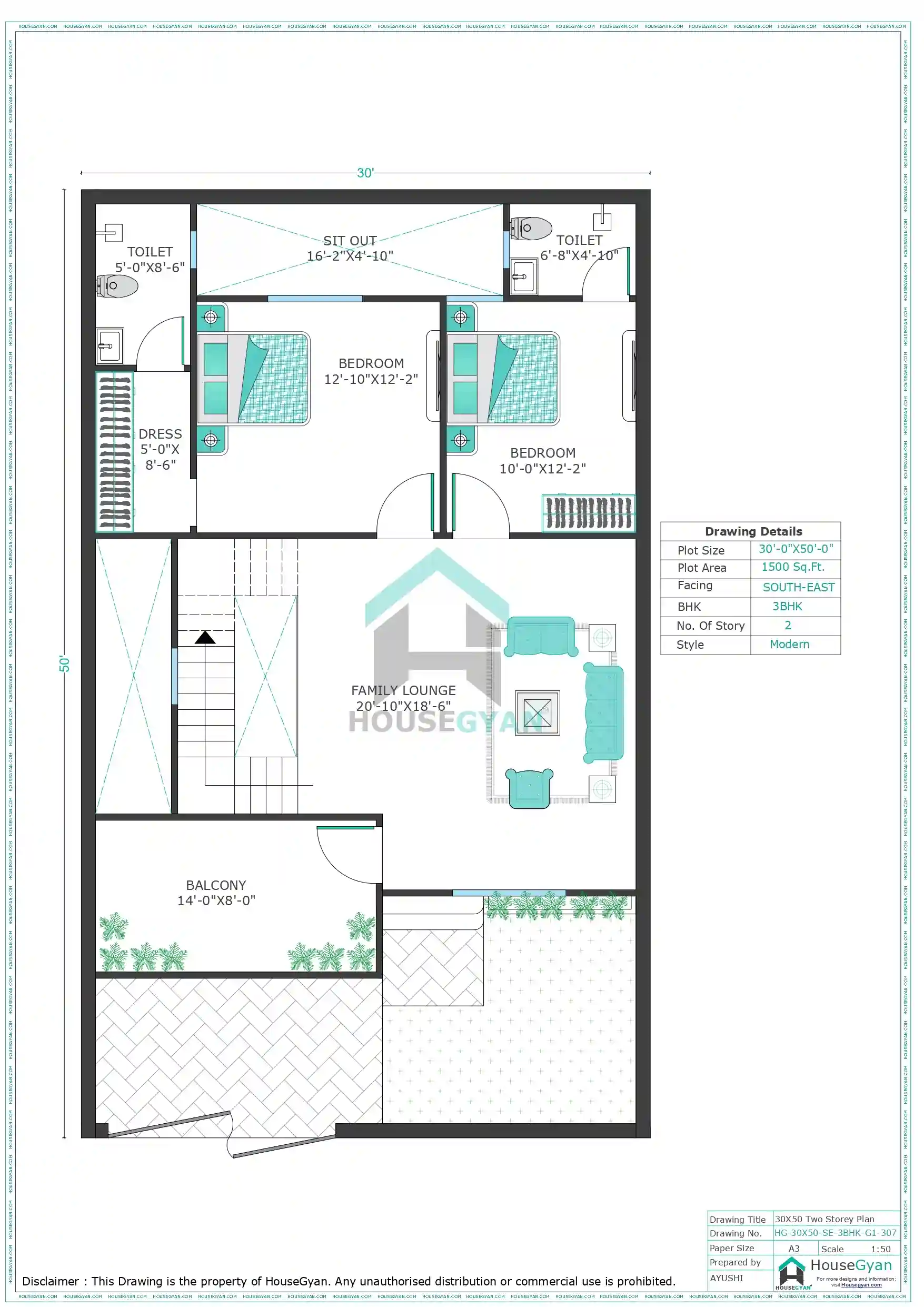 At HouseGyan Architects, we specialize in Custom House Drawings for 30x50 plot sizes—whether you prefer a traditional multi-storey home or a sleek, modern single-floor design. If you’re planning your dream home, this 1500 sqft north-facing plan is an excellent choice. To estimate construction costs in advance, try our House Construction Price Calculator for accurate budget planning.