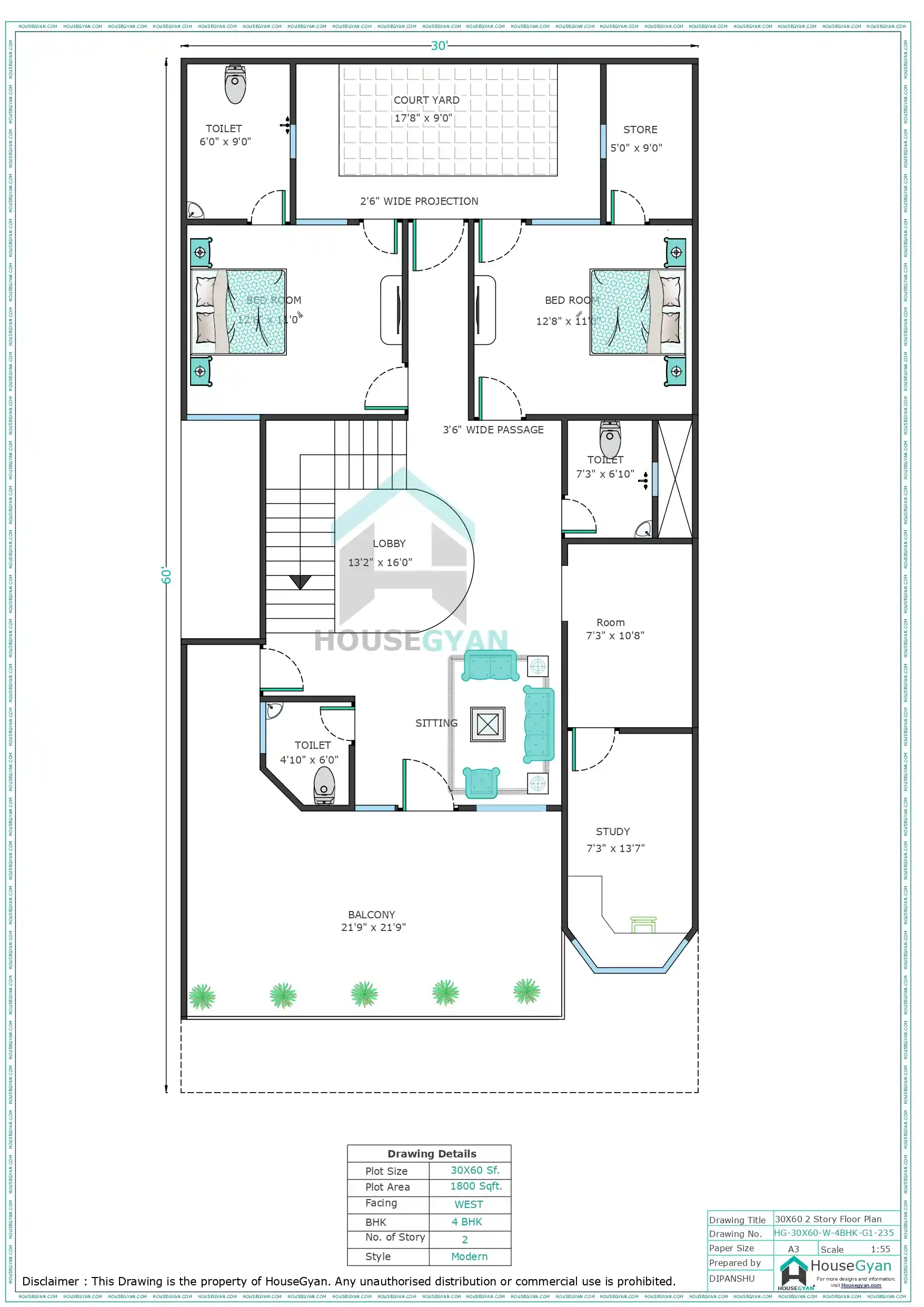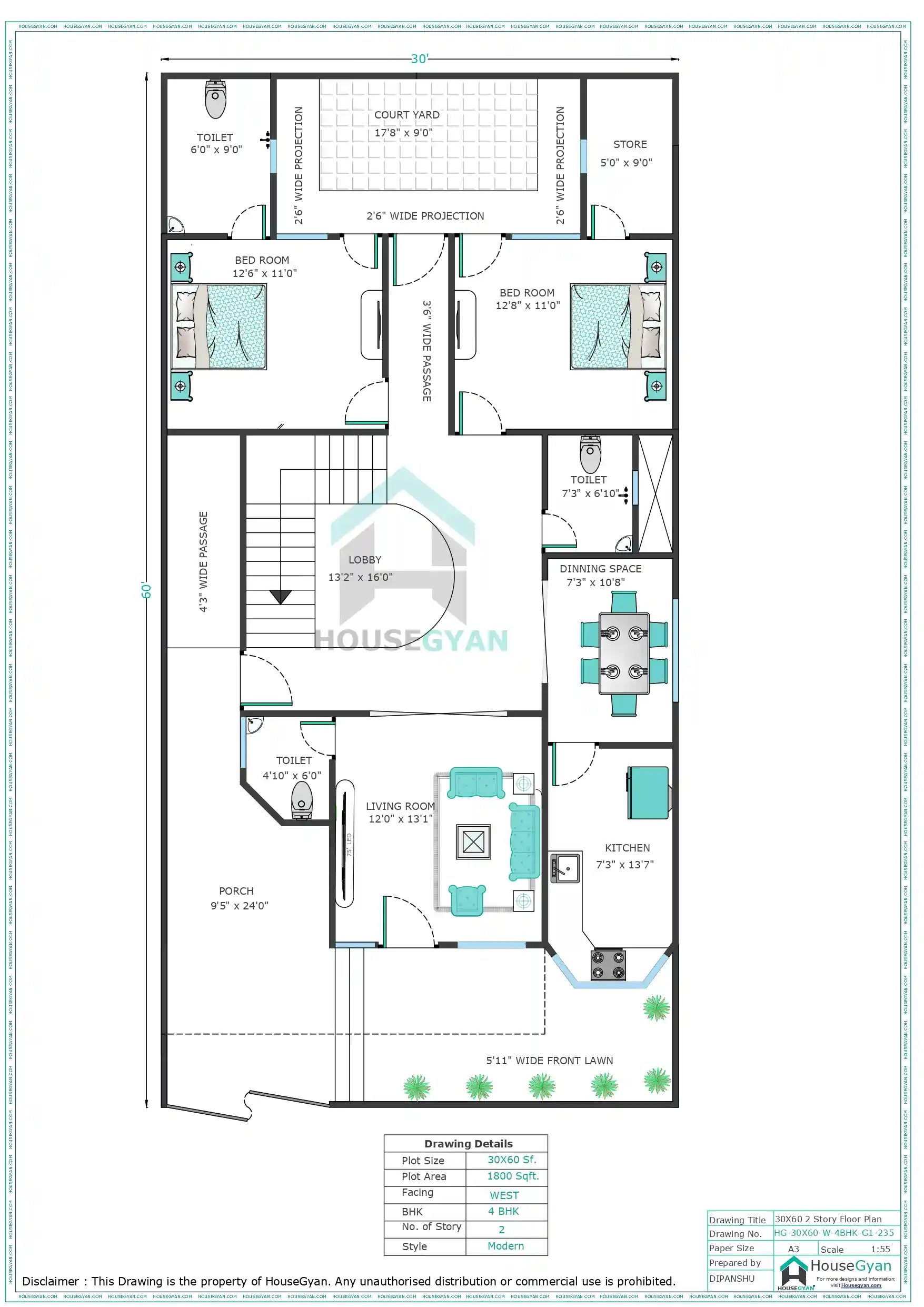 More 30X60 House Drawing Options at HouseGyan