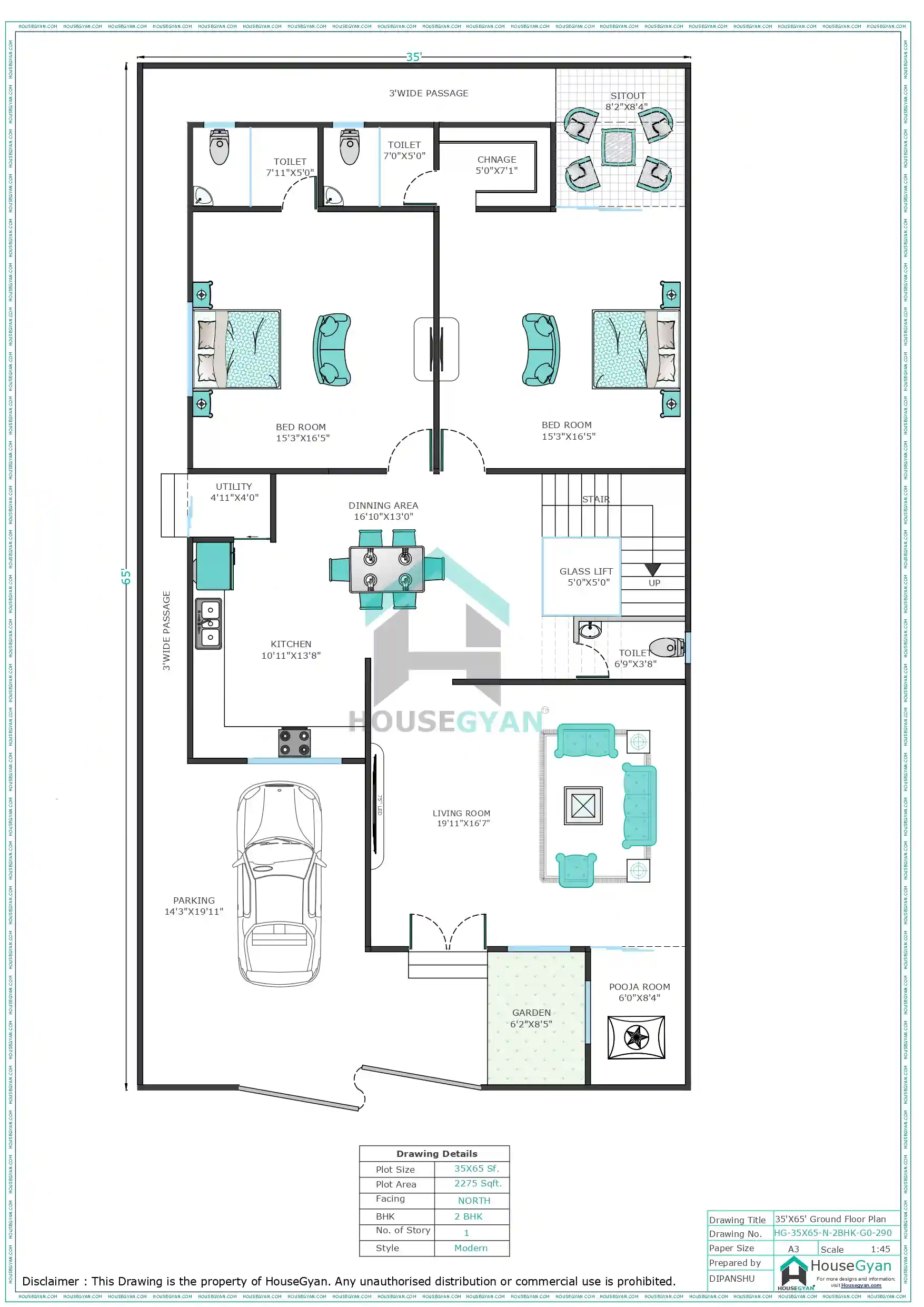 At HouseGyan, explore a variety of 35X65 house plan designs, such as: