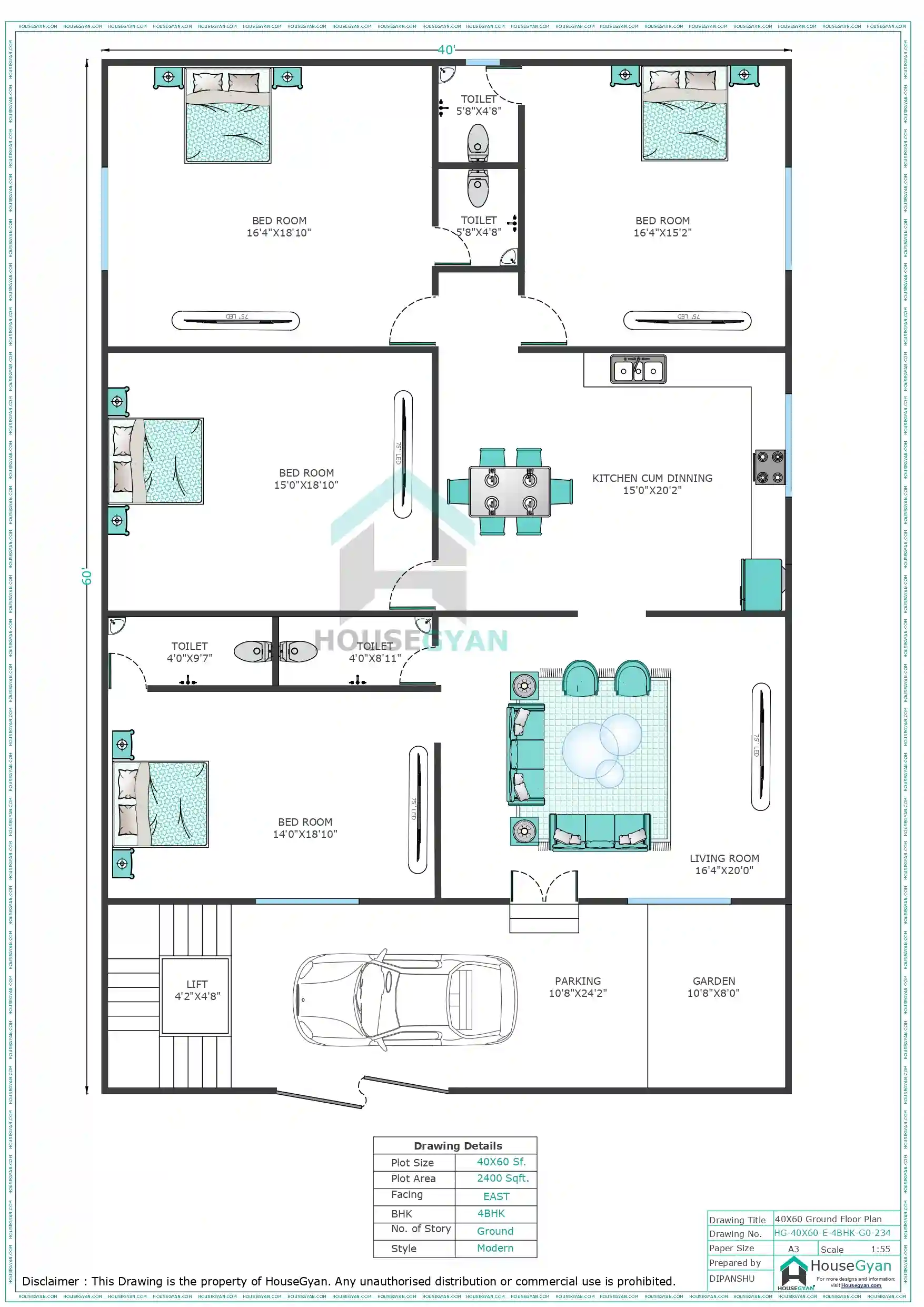 Explore more 40X60 house plans and custom 4BHK layouts only at HouseGyan