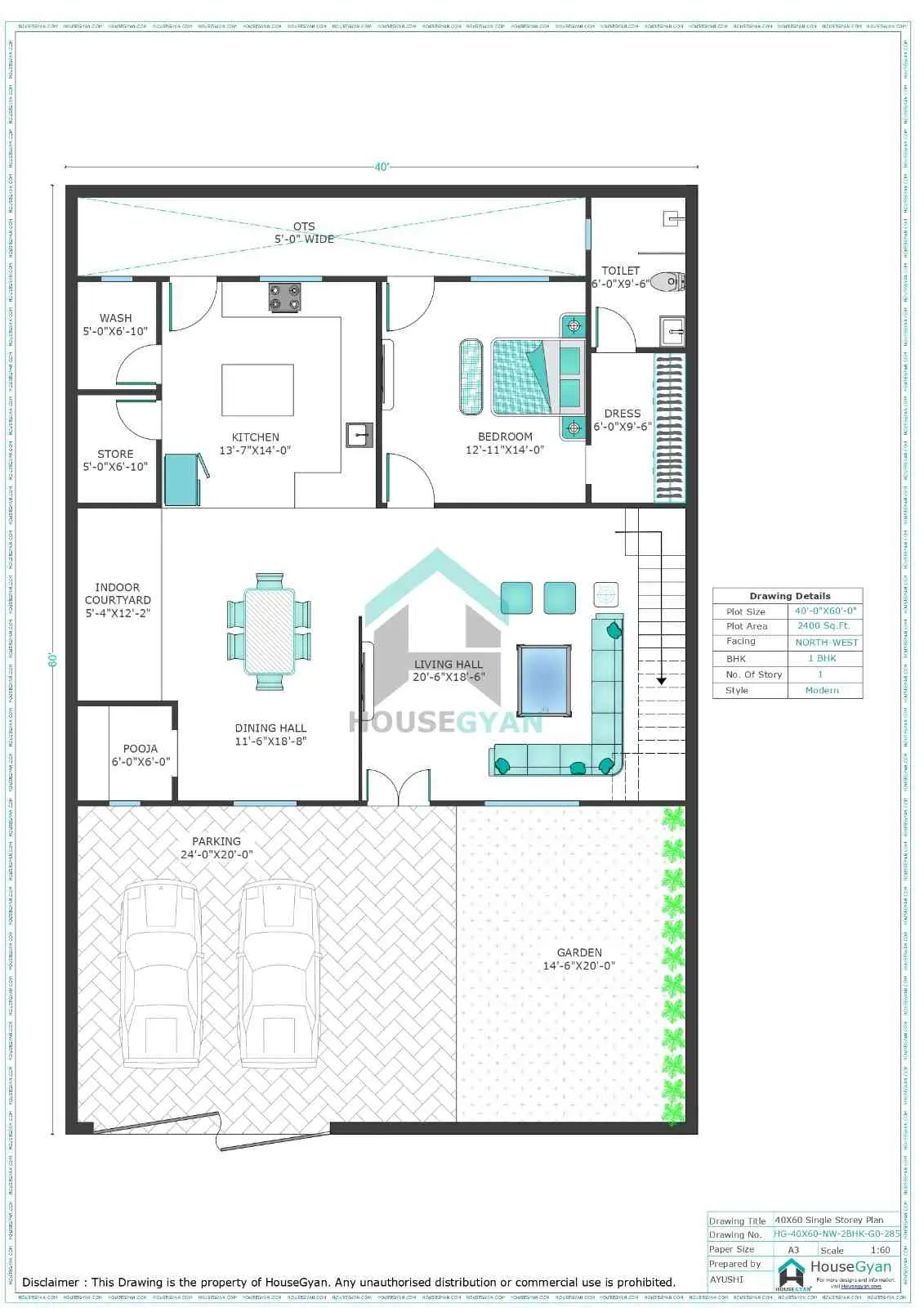 At HouseGyan, you can explore multiple 40X60 house plan designs, including: